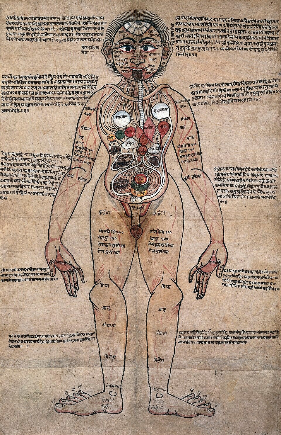 And it says something the biomedical literature cannot say, because the biomedical literature does not have the vocabulary for it. Caraka lists, among the primary factors that deplete ojas and open the body to disease: chinta, bhaya, shoka. Worry. Fear. Grief.[15] Not stress, which is mechanical. Not trauma, which is an event. These are placed not among the psychological complications of illness, not as downstream consequences, but as root causes, on equal footing with excess fasting, with adverse season, with exposure to wind and sun. Before the inflammation, before the cascade, before the fire at the spleen burns through the blood: grief. And its antidote, also from Caraka: dhee dhairya atmadi vijnanam. "Intellect, courage, and self-realization are the supreme medicines for disorders of the mind." What the gut cannot break down, the mind cannot clear. What the mind finds the courage to face, the channels can begin to process.